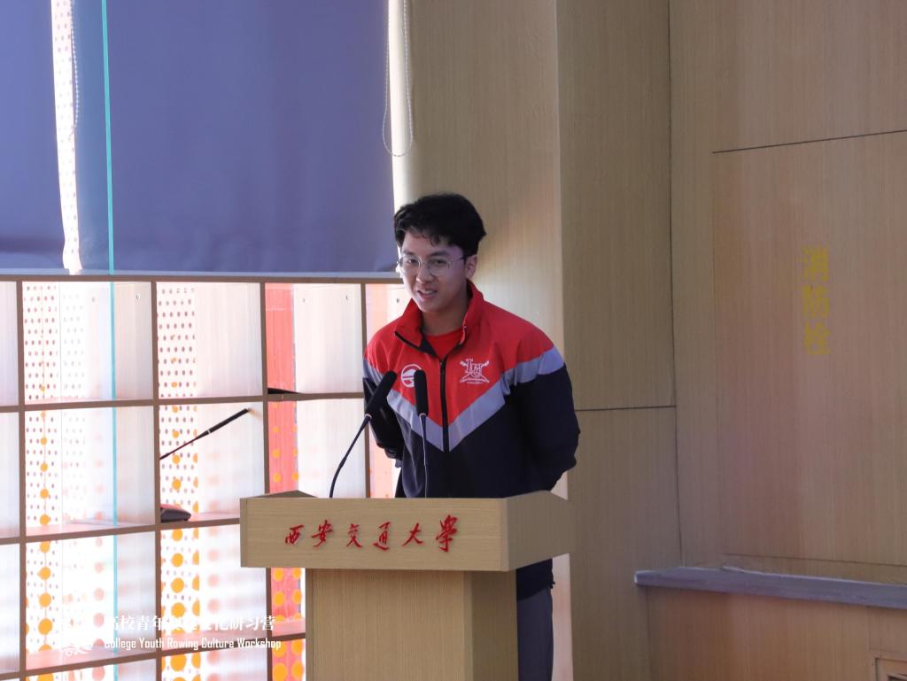 4月23日下午,研习营开营仪式在西安交通大学“一站式”学生社区成长中心举行,西安交通大学港澳台办副主任孙中国为营员代表授旗开营。座谈分享会上,两岸青年通过赛艇文化分享会畅谈运动精神,增进两岸青年互相了解,共同进步。来自西安交通大学医学部的杨铭轩谈到:“这柄桨划过灞河的浪,也划过日月潭的波——原来两岸青年追求卓越的航向,前进的方向从来都是一致的。”